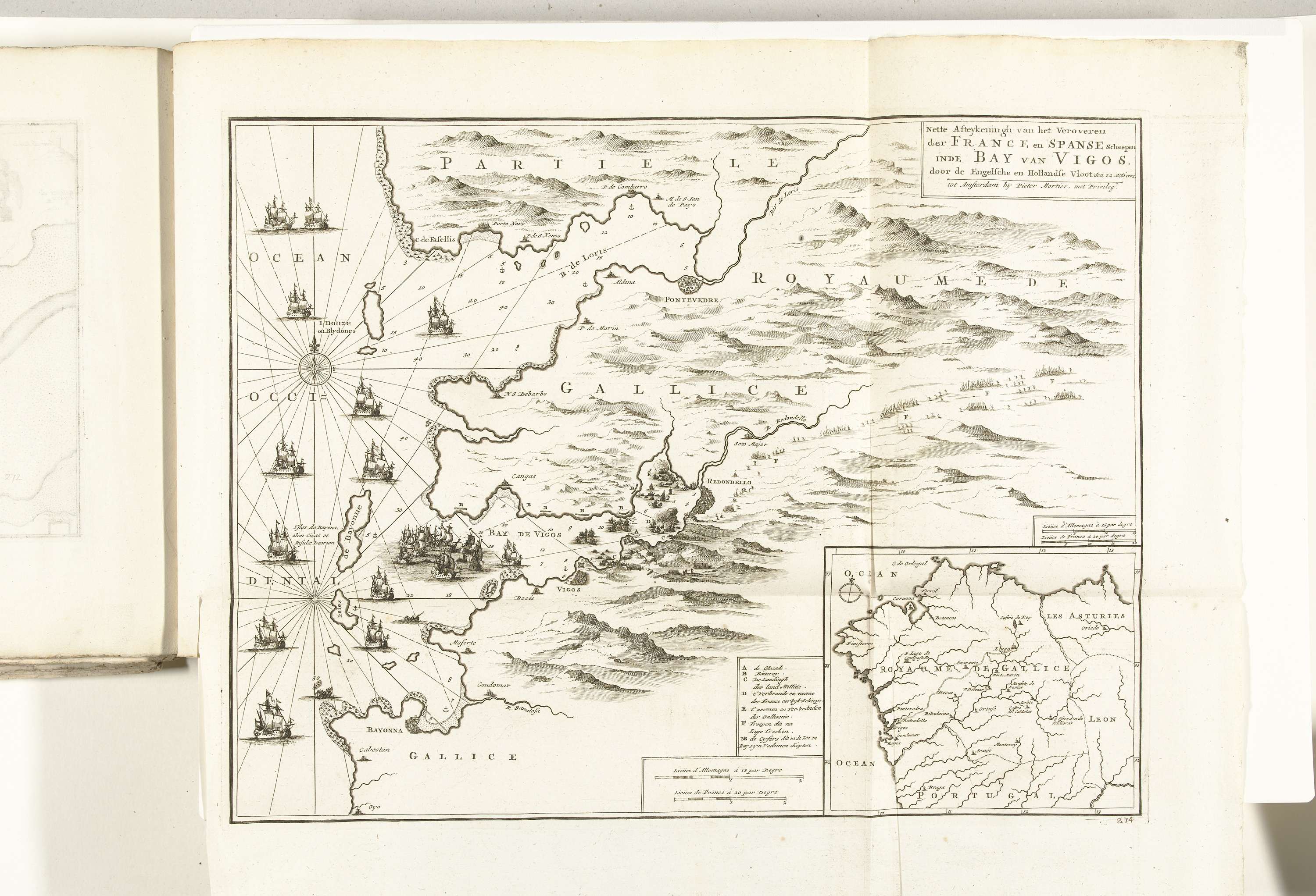 Kaart met de zeeslag in de baai van Vigo, 1702