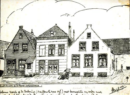 Ingekleurde tekening. Het Achterom Vlaardingen gezie...