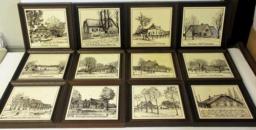Set van twaalf tegels ingelijst met afbeeldingen van...