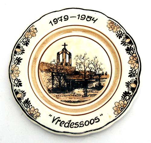 Vredessoos 1979 – 1984. Gedenkbord met geschulpte r...