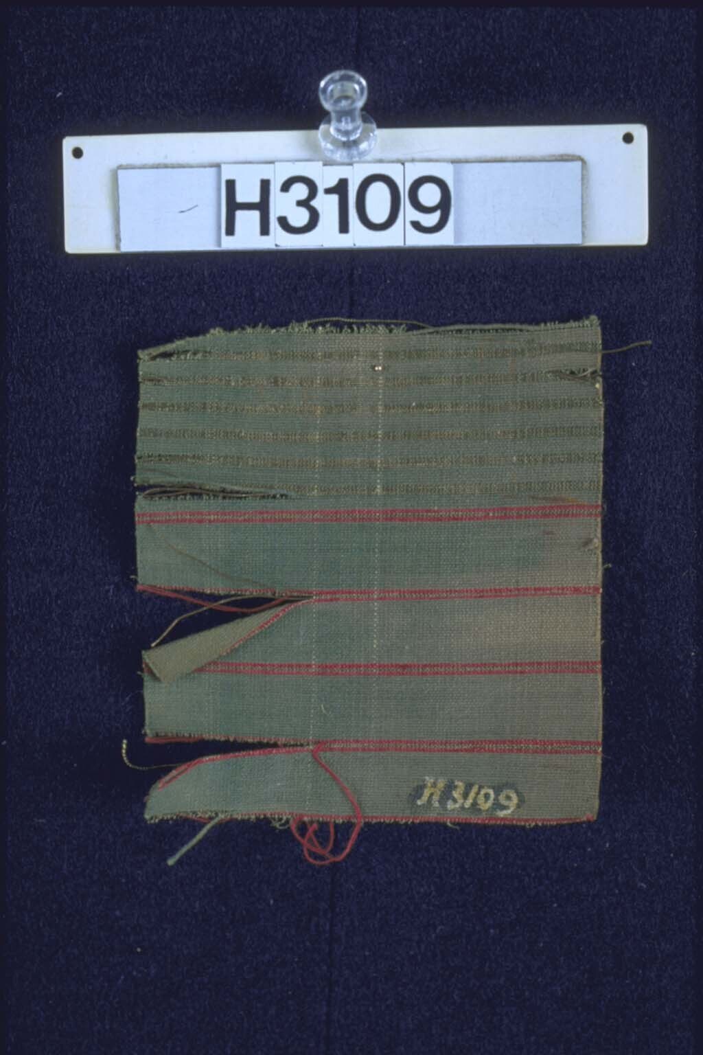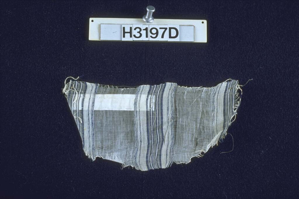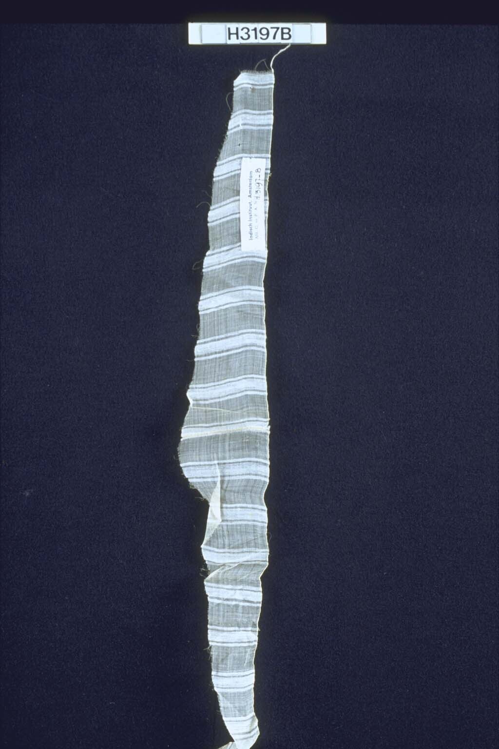 Fragment van een wit en blauw gestreept weefsel met ...