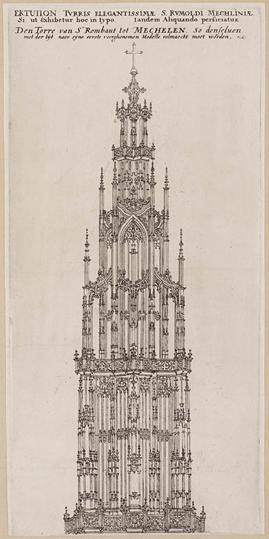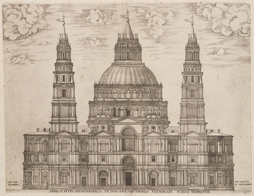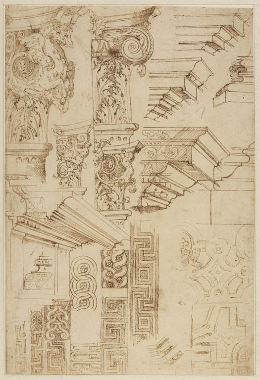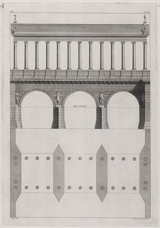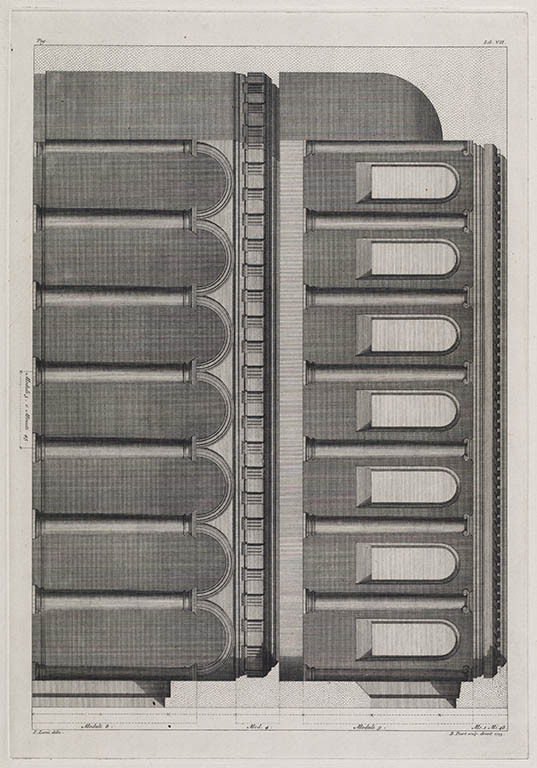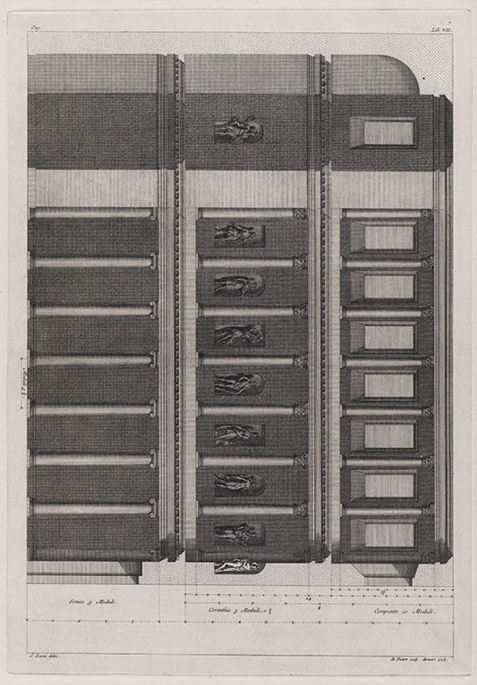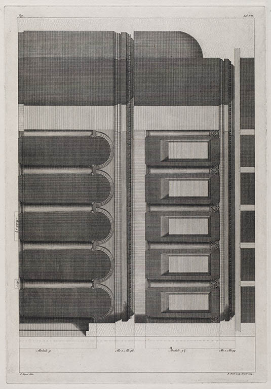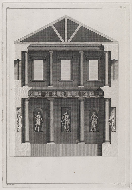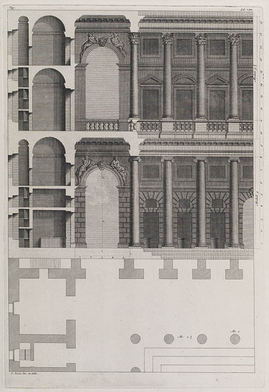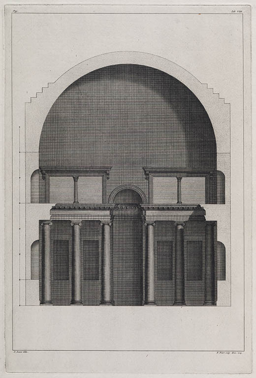 Doorsnede van vertrek met koepel en twee verdiepingen