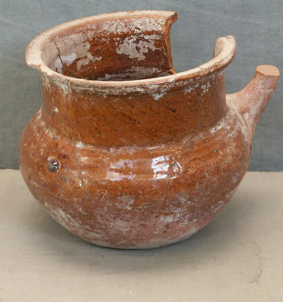 pot van rood bakkend aardewerk, gelazuurd, 18e eeuw