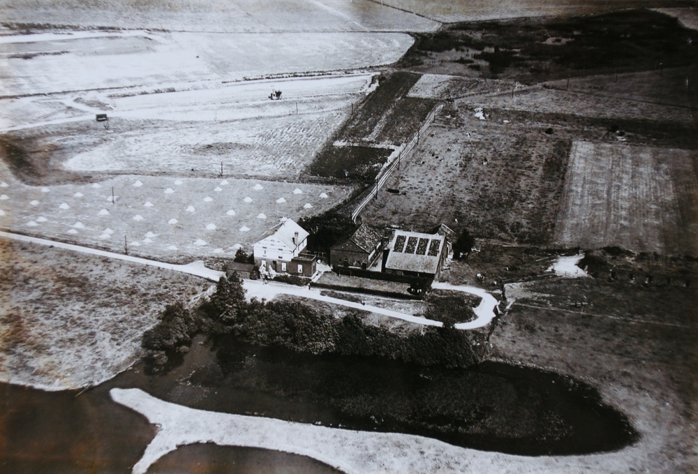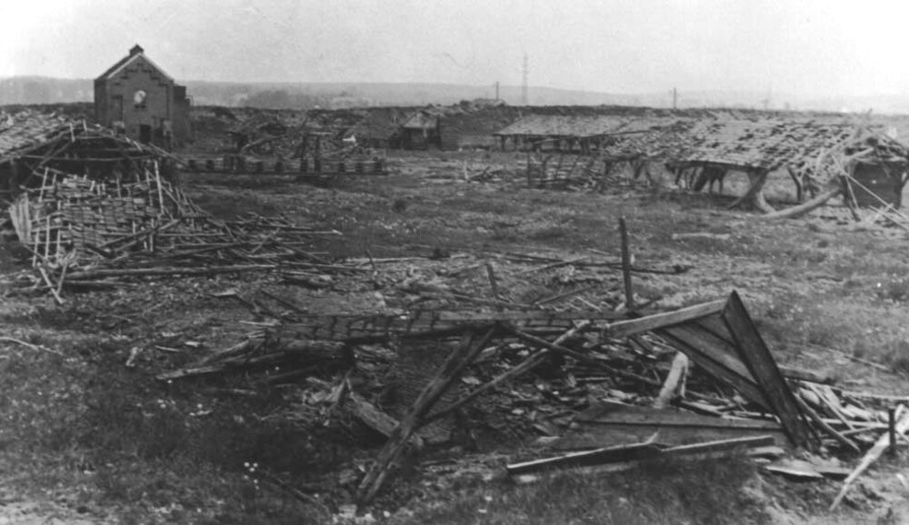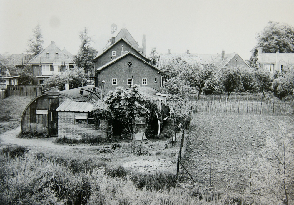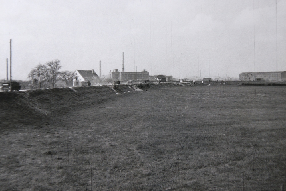 Oude Veerweg met op achtergrond de AKU (april 1945)....