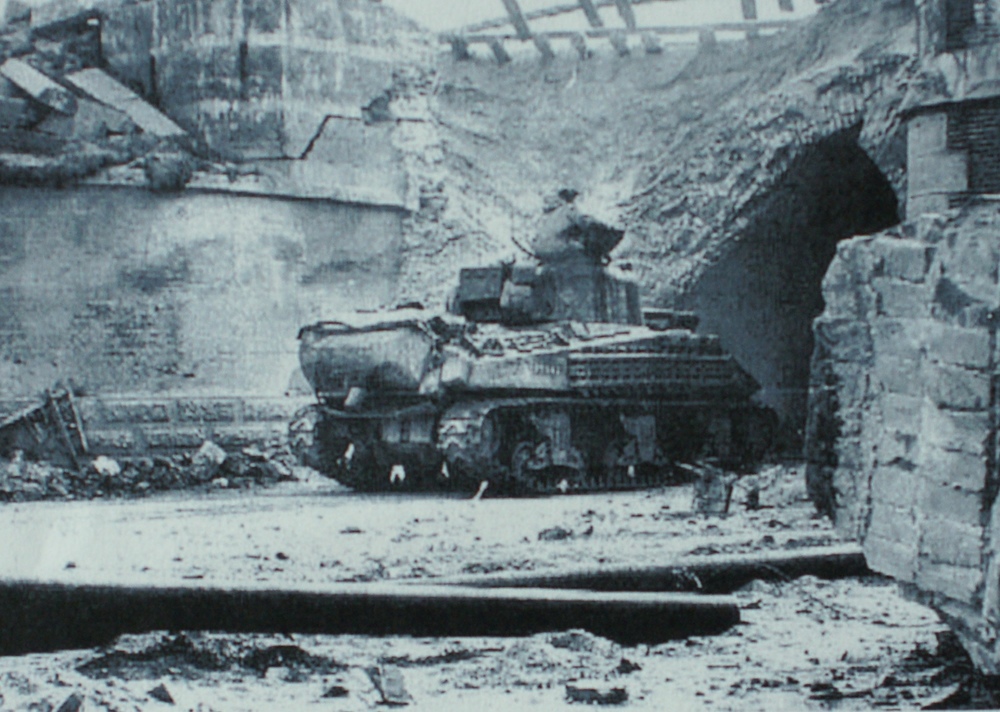 tank voor het spoorwegviaduct richting Brugweg. WOII.