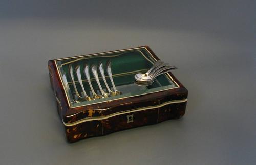 Schildpad lepeldoos met glazen deksel. Bevat 12 zilv...