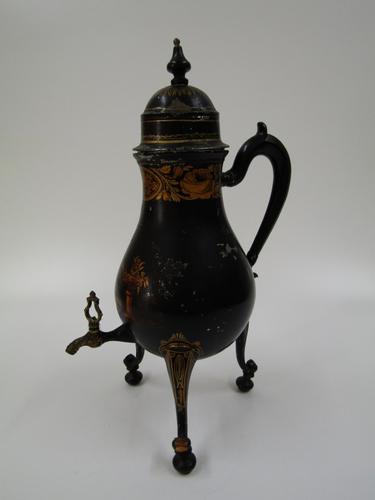 Tinnen koffiekraantjeskan beschilderd in zwart, goud...