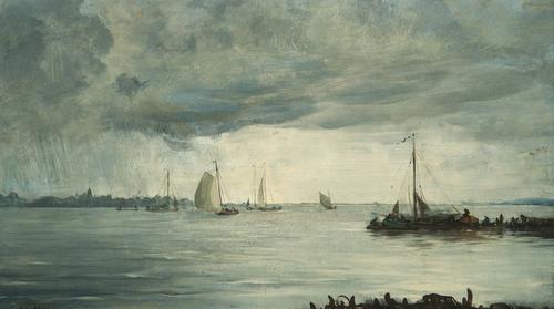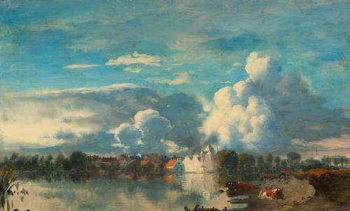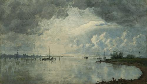 Scheepjes op de IJssel onder fraai bewolkte lucht in...