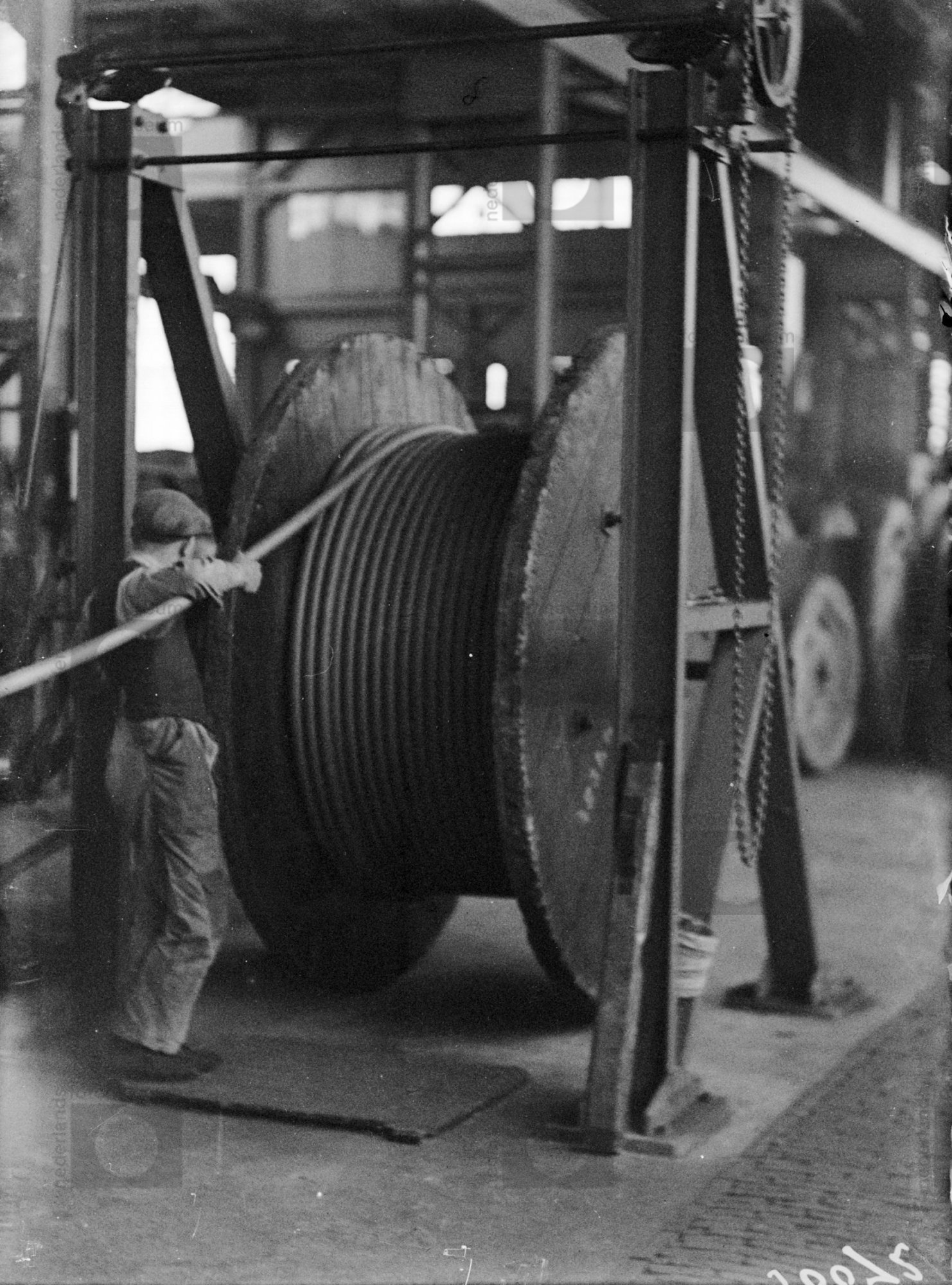 Haspel met kabel in houder