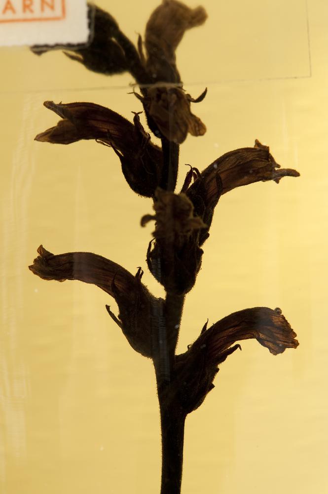 Blauwe bremraap, Orobanche purpurea, op duizendblad