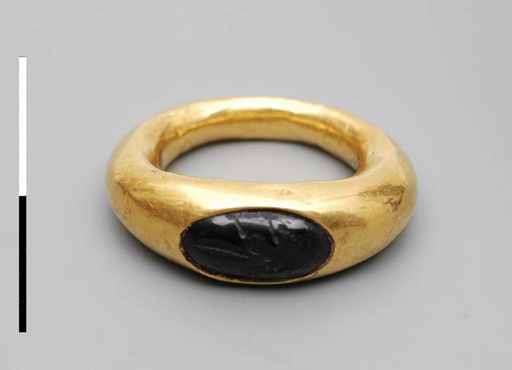 Ring van goud met een gem van glas uit de Romeinse tijd