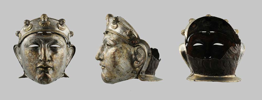 IJzeren gezichtshelm, bekleed met verzilverd brons, ...