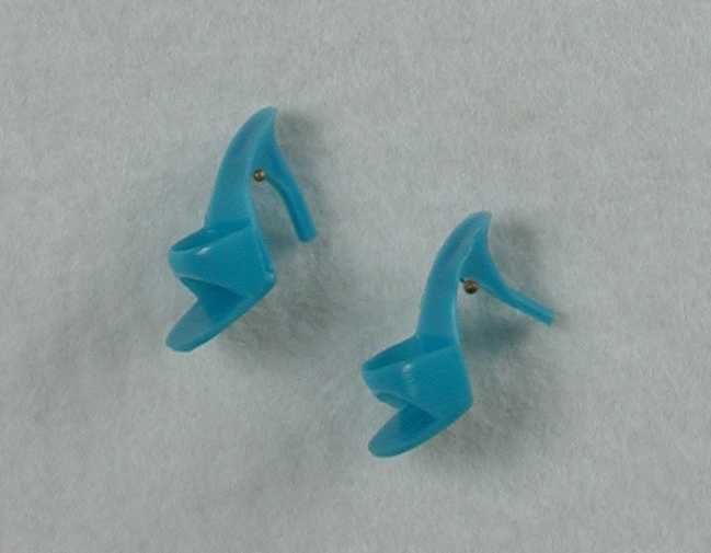 Poppenkleding, paar turquoise plastic pumps, "Barbie...