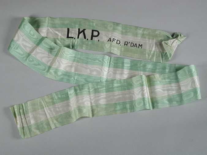 Moirée kunstzijden graflint, groen-wit-groen met in ...
