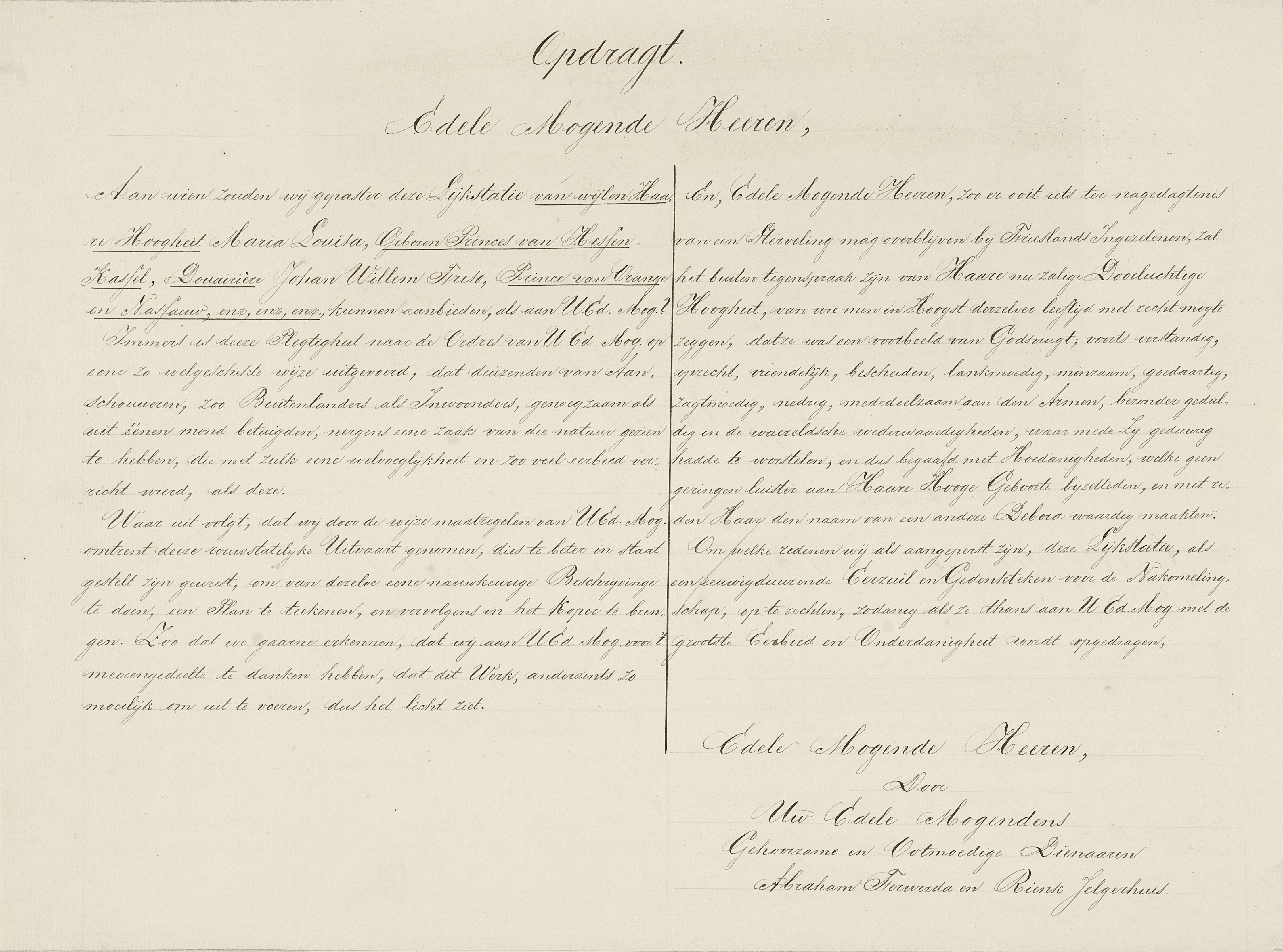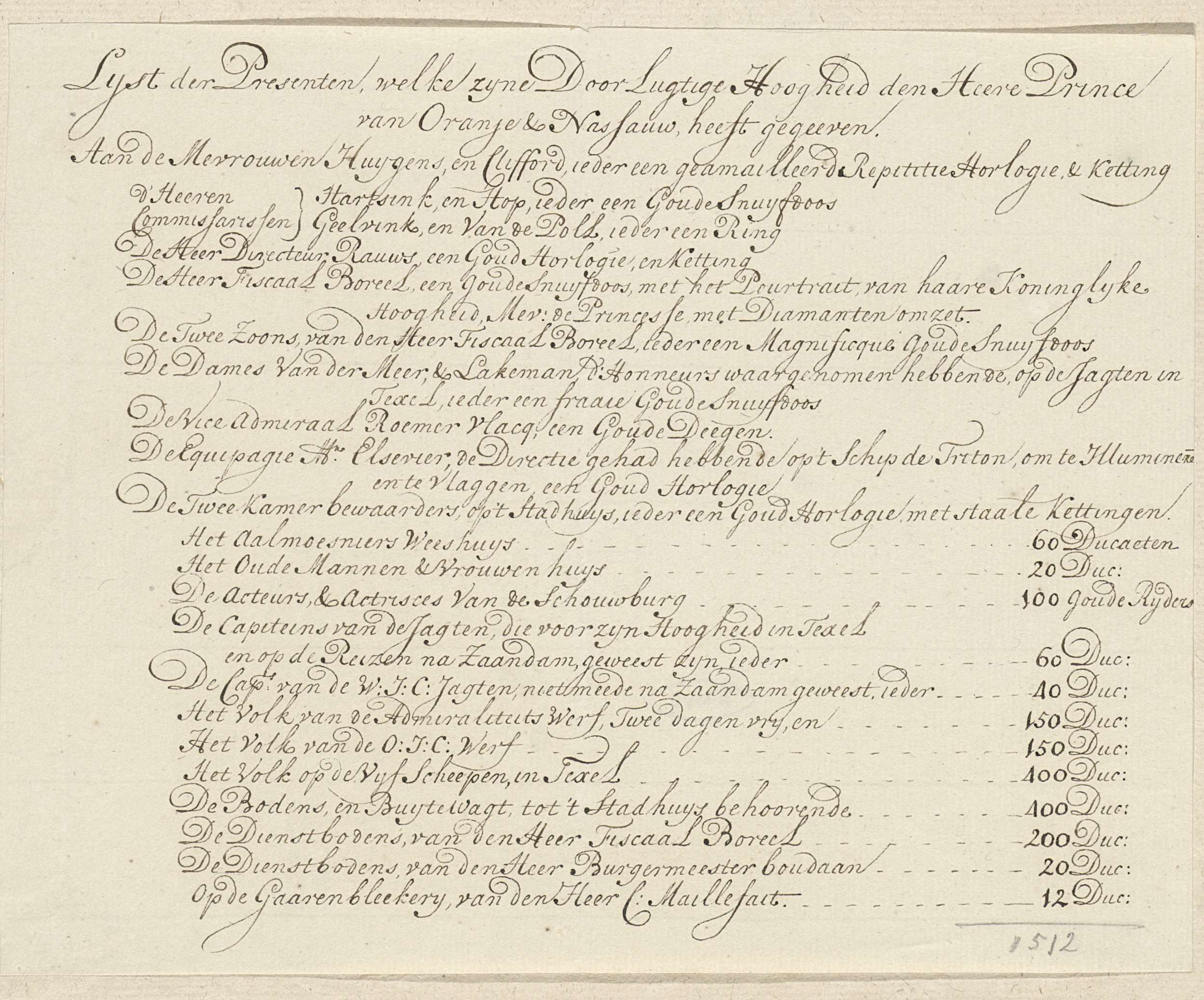 Lijst van geschenken van Willem V bij zijn bezoek aa...