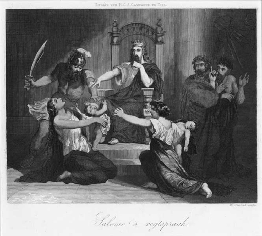 Gravure, voorstellende de rechtspraak van Salomon, v...
