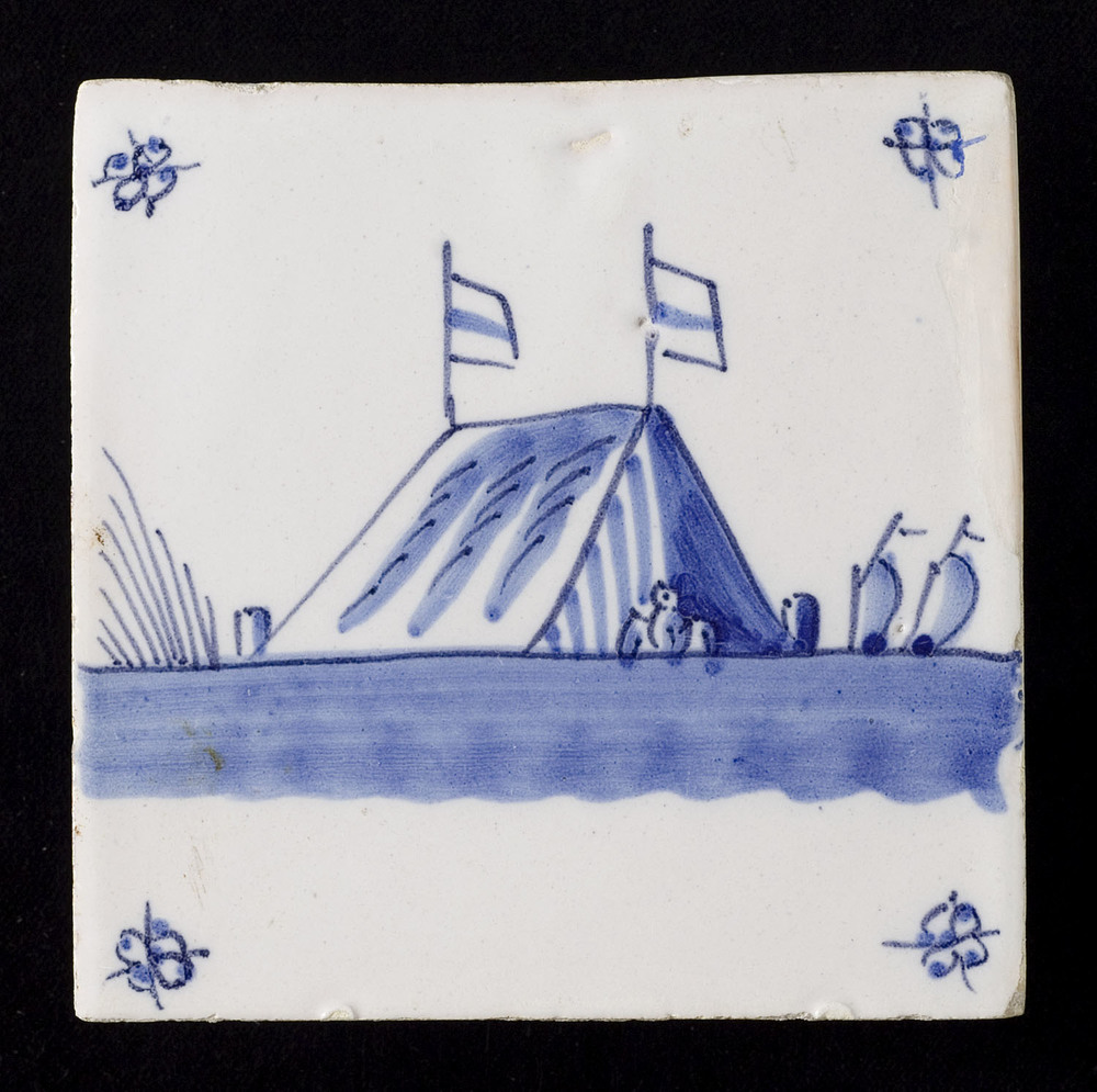 tegel van aardewerk met tinglazuur, voorstellende: k...