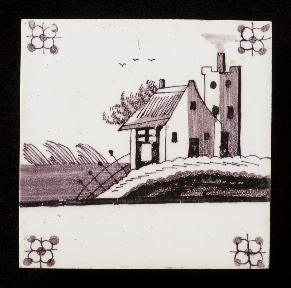 Tegel van keramiek, tinglazuur, voorstellende: brug ...