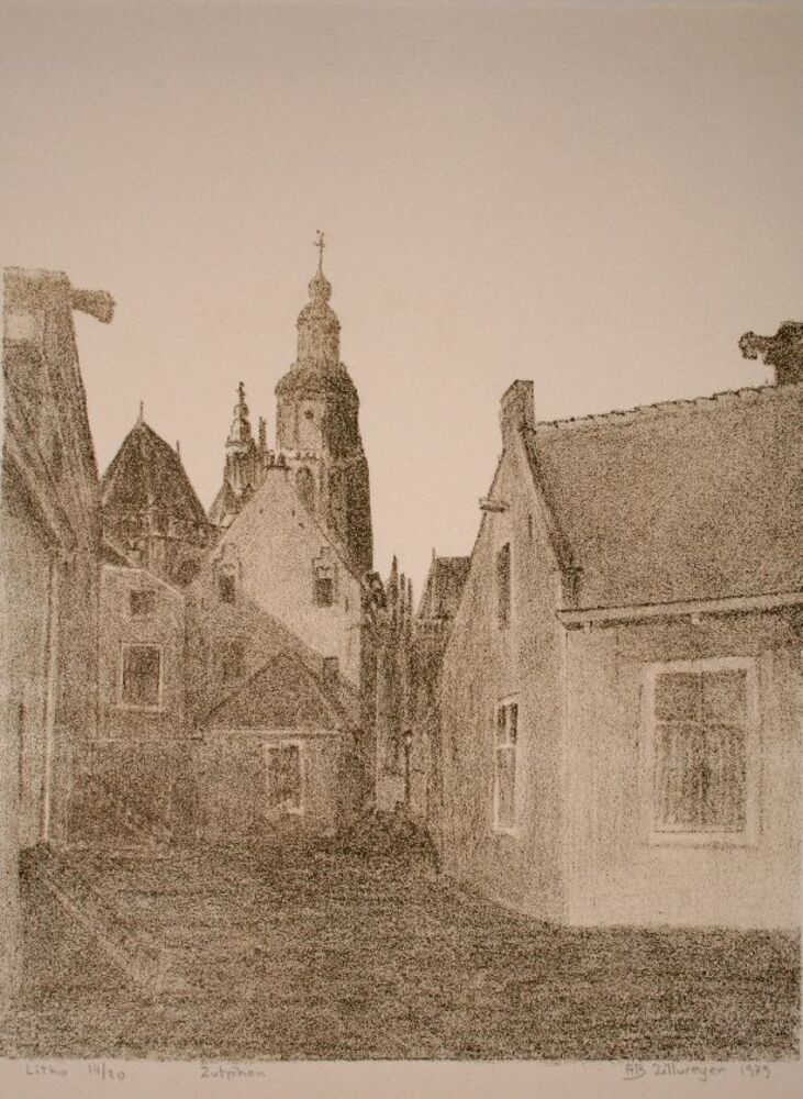 aquarel, man met hond en slee, Jan van Anrooy 1979