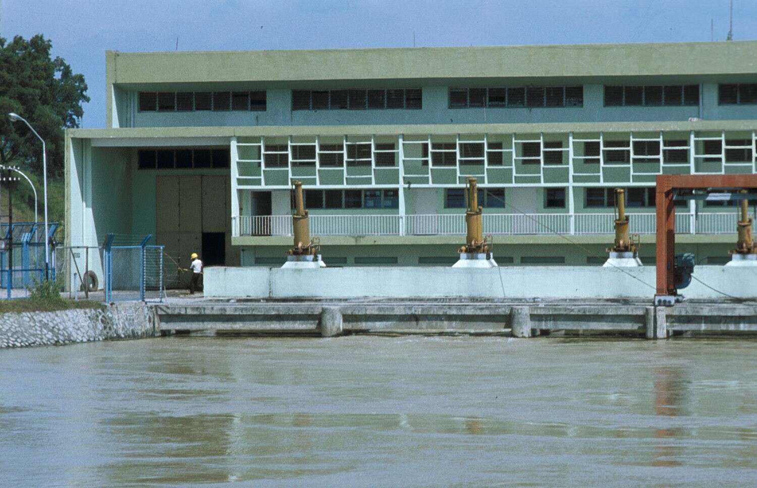 Pomphuis in de Citarum-rivier, Jatiluhur, West-Java.