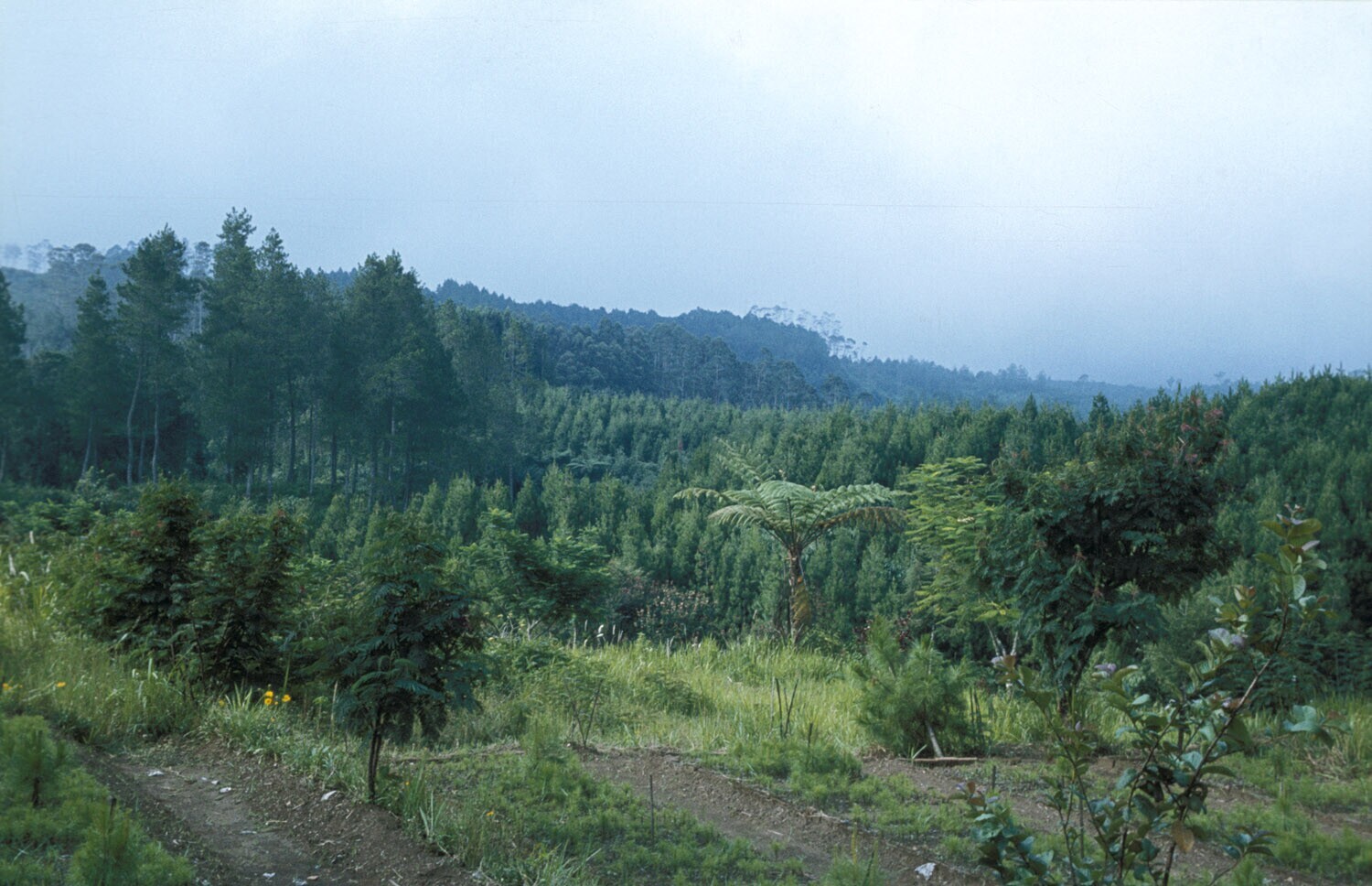 Pinus (=den) aanplant, te Bandung, West-Java.