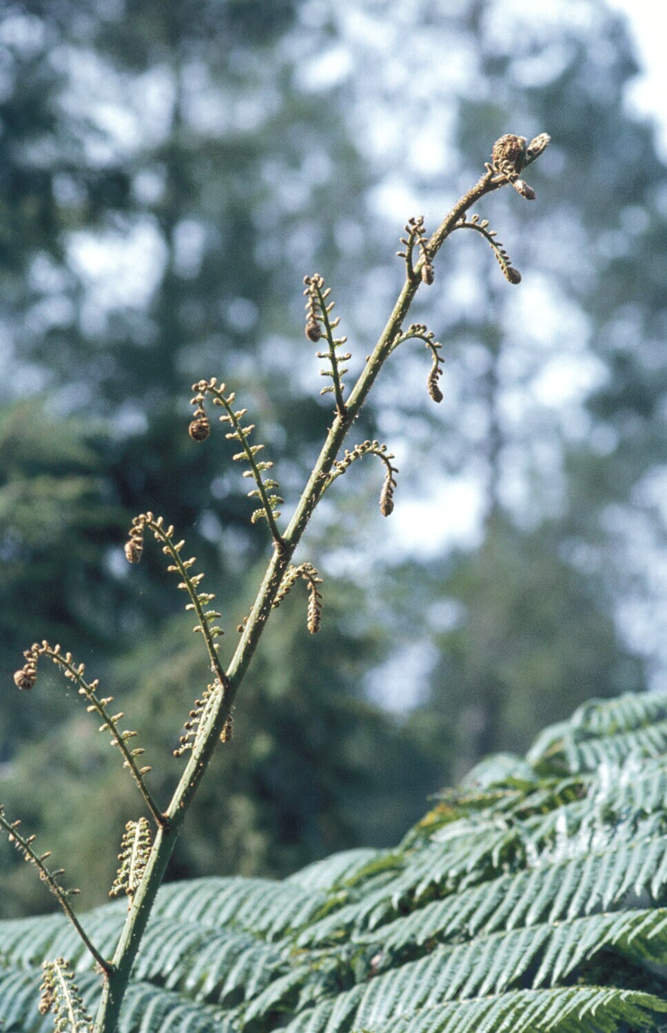 Close-up van een varen in het pinus (=den) bos te Ba...