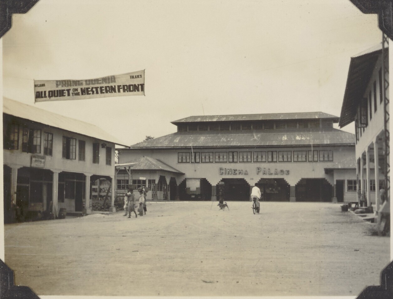 Zicht op Cinema palace met op een spandoek de aankon...