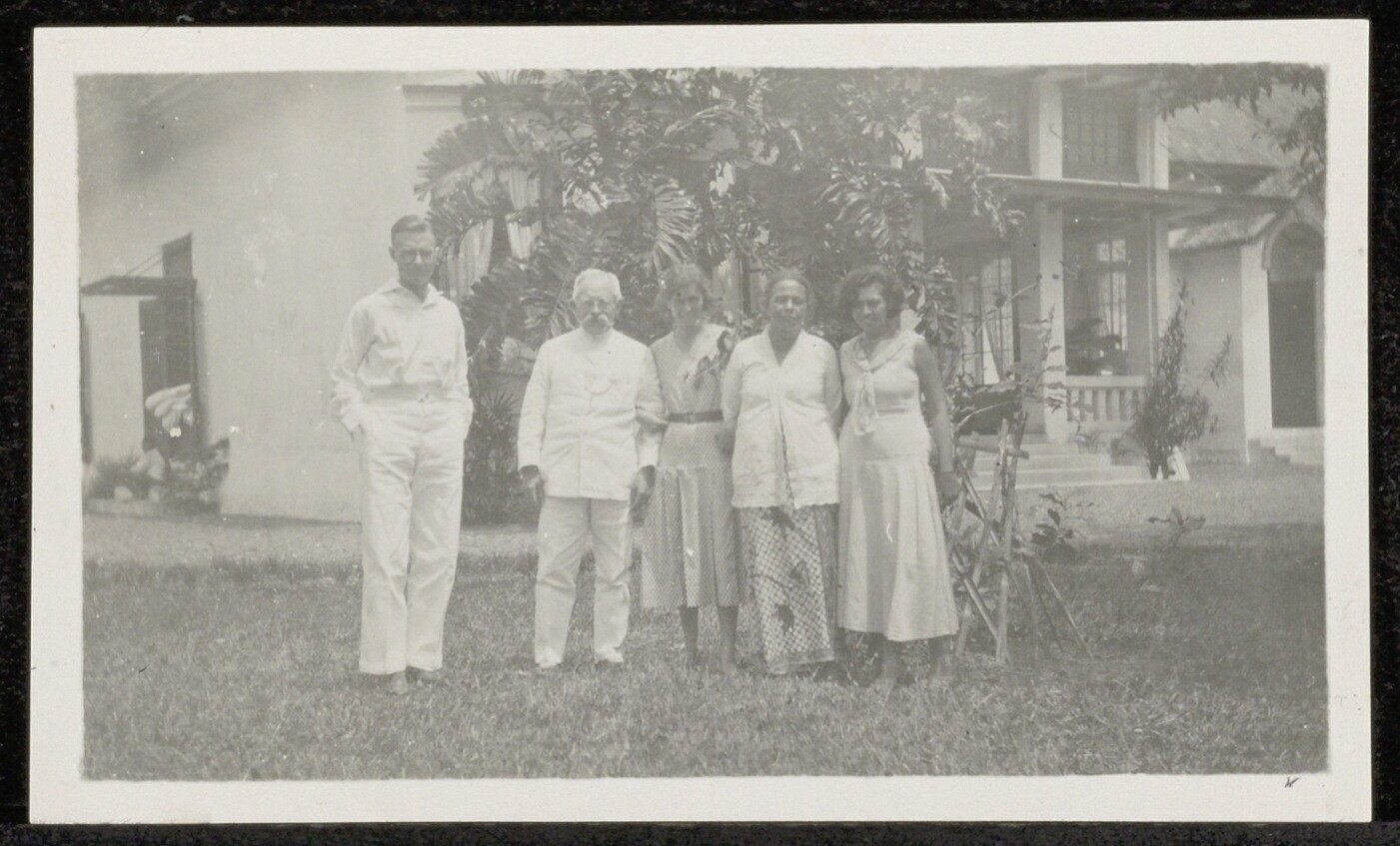 Groepsportret in een tuin in Indonesië