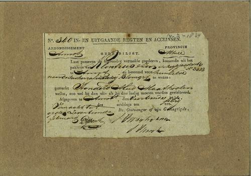 Brief betreffende zout-, zeep-, heere-, en redemptie...