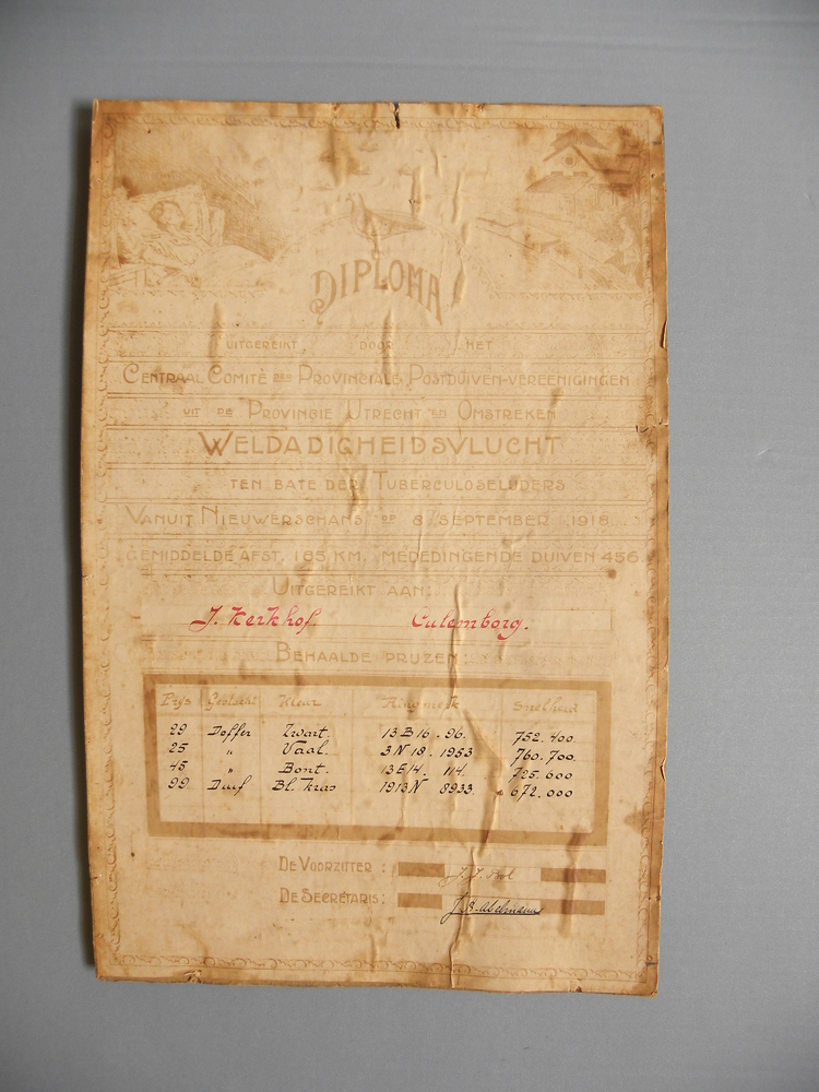 diploma op papier uitgereikt aan J. Kerkhof, 8 septe...