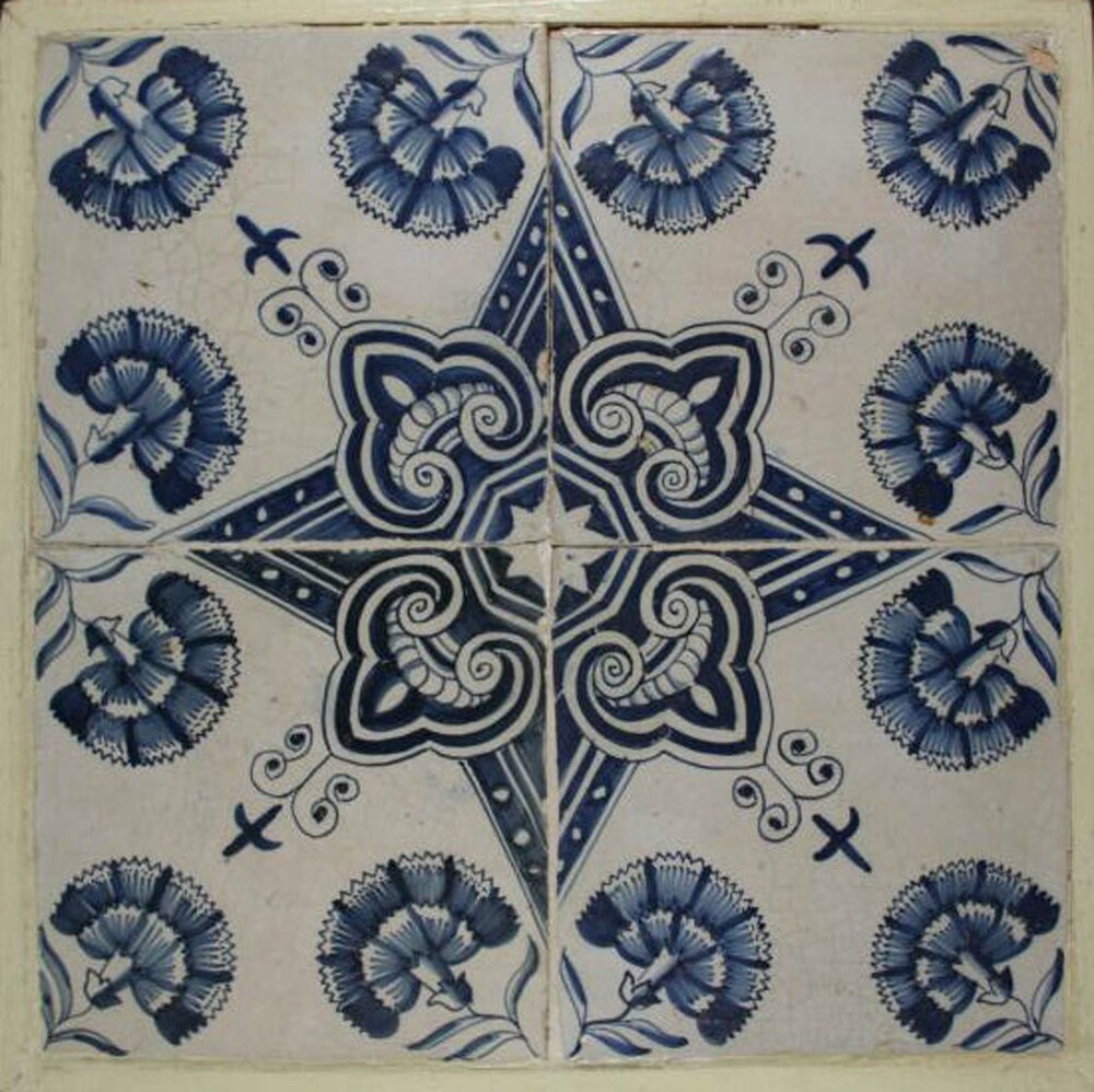 Tableau van aardewerk tegels met tinglazuur, voorste...