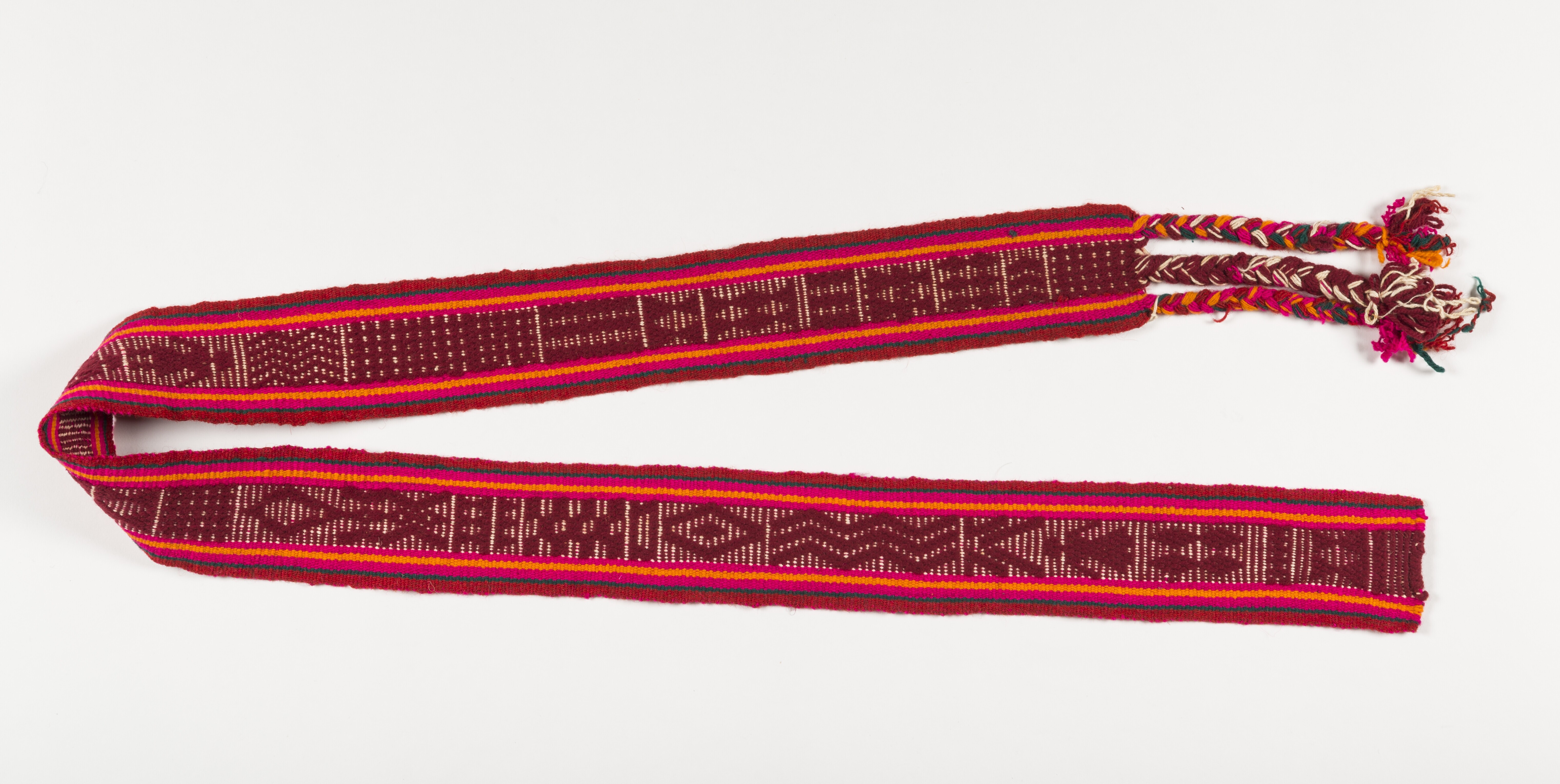 Gevlochten tas versierd met een kleurenpatroon, vere...