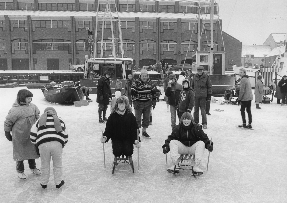 Schaatsers op de ijsbaan van IJsclub Vol Moed