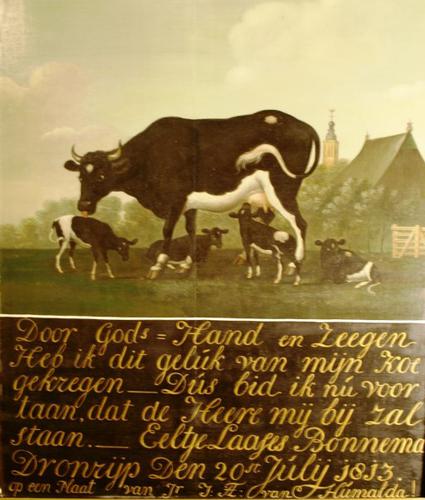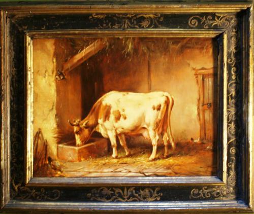Schilderij in olieverf op doek met de titel 'Kalfje ...