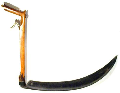 Slootkantmes van metaal met houten steel gebruikt vo...