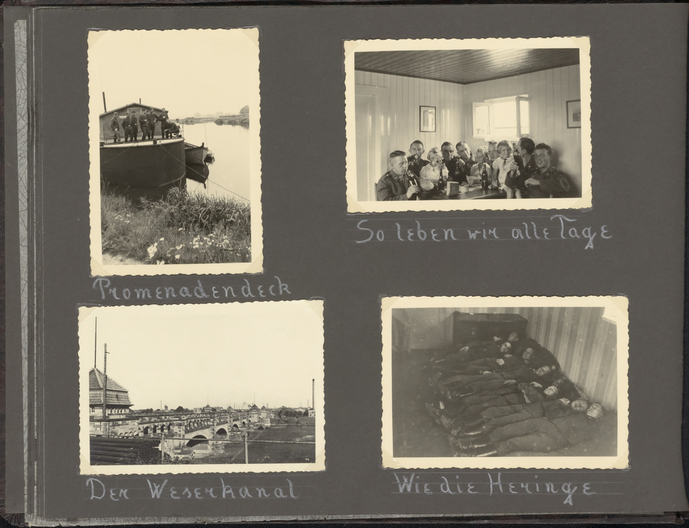 1: Militairen op de woonboot "Hein Godenwind", 2: me...
