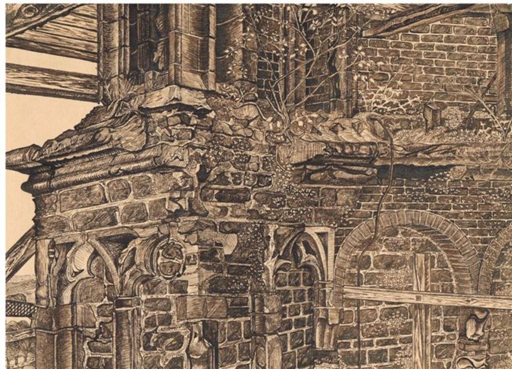 pentekening. fragment van de Sint Maartens -toren te...