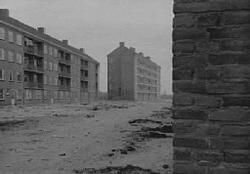 straat muur in voorgr, Haarlem nieuwbouw