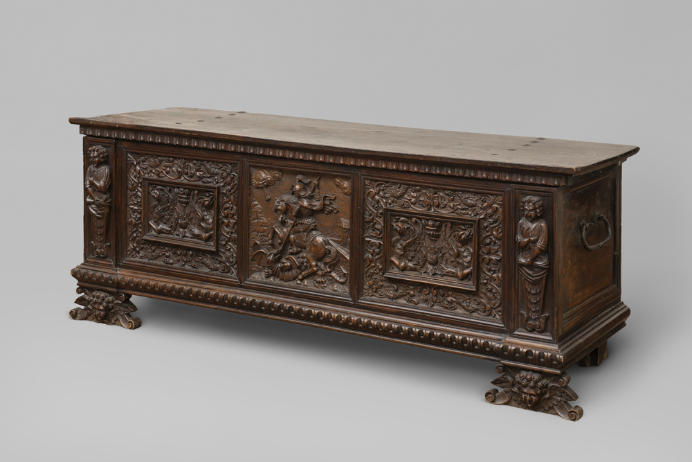 Kist "Cassone" notenhout, 19e eeuw, Frentino