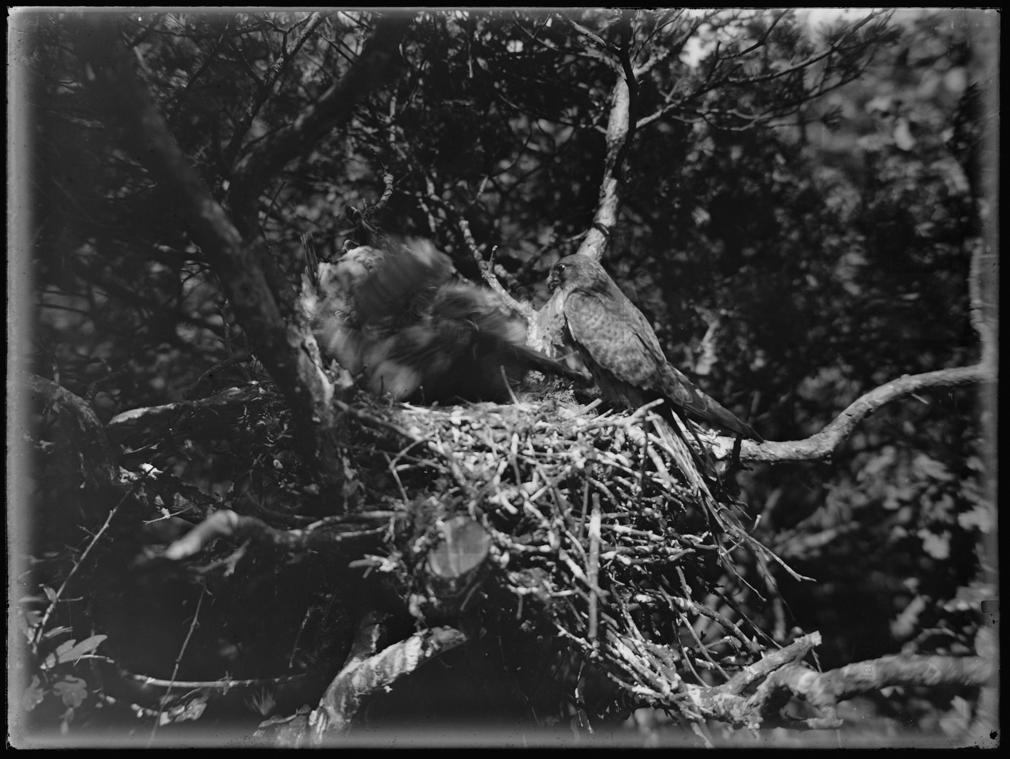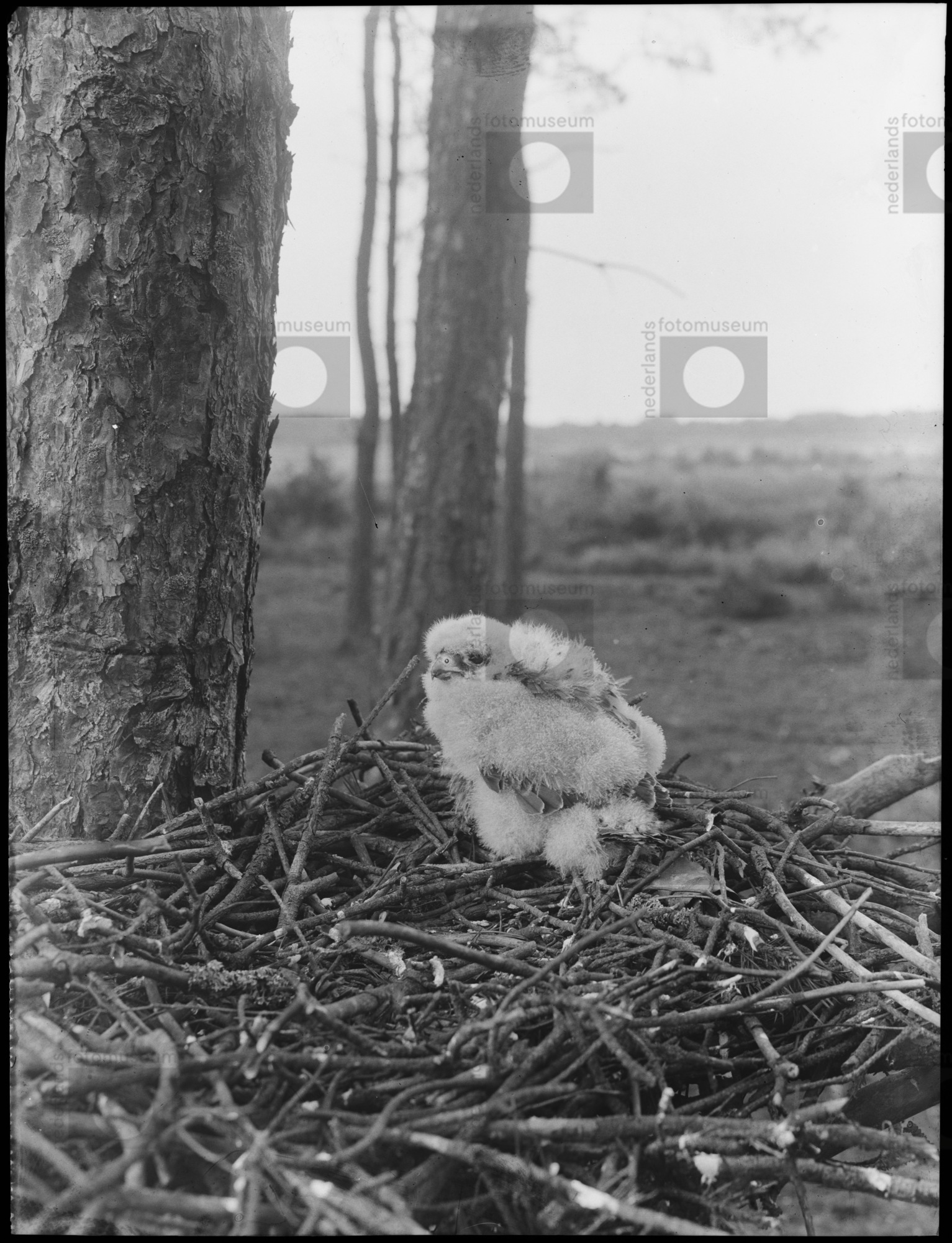 Torenvalk bij nest met jongen, Veldbos, Gietelo (1911)