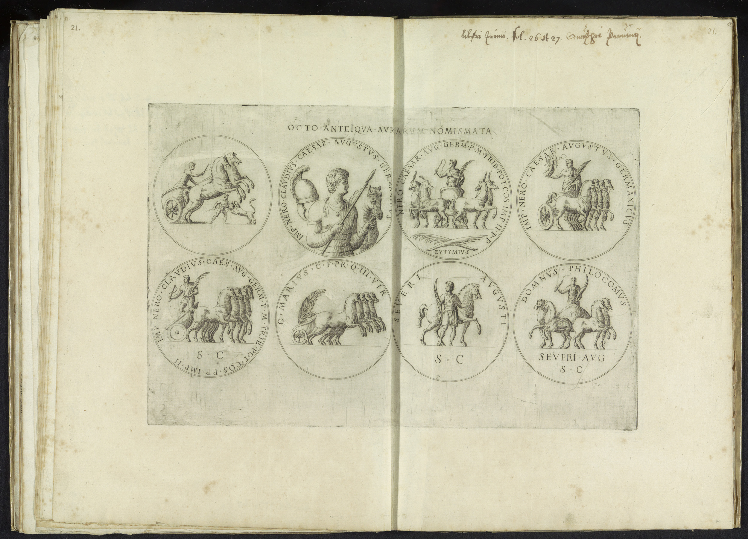 Acht penningen met triomfwagens