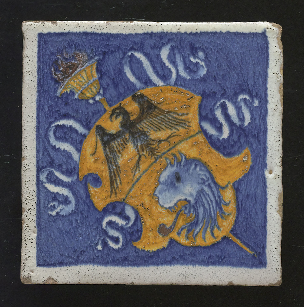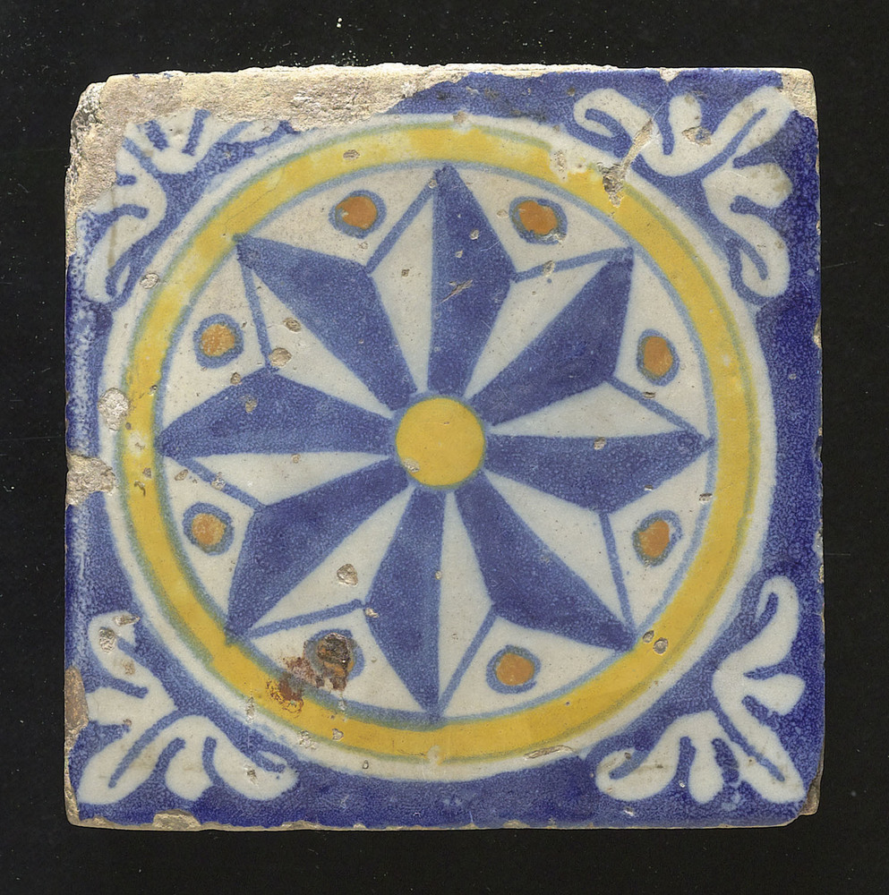 Vloertegel van keramiek, loodglazuur, voorstellende ...