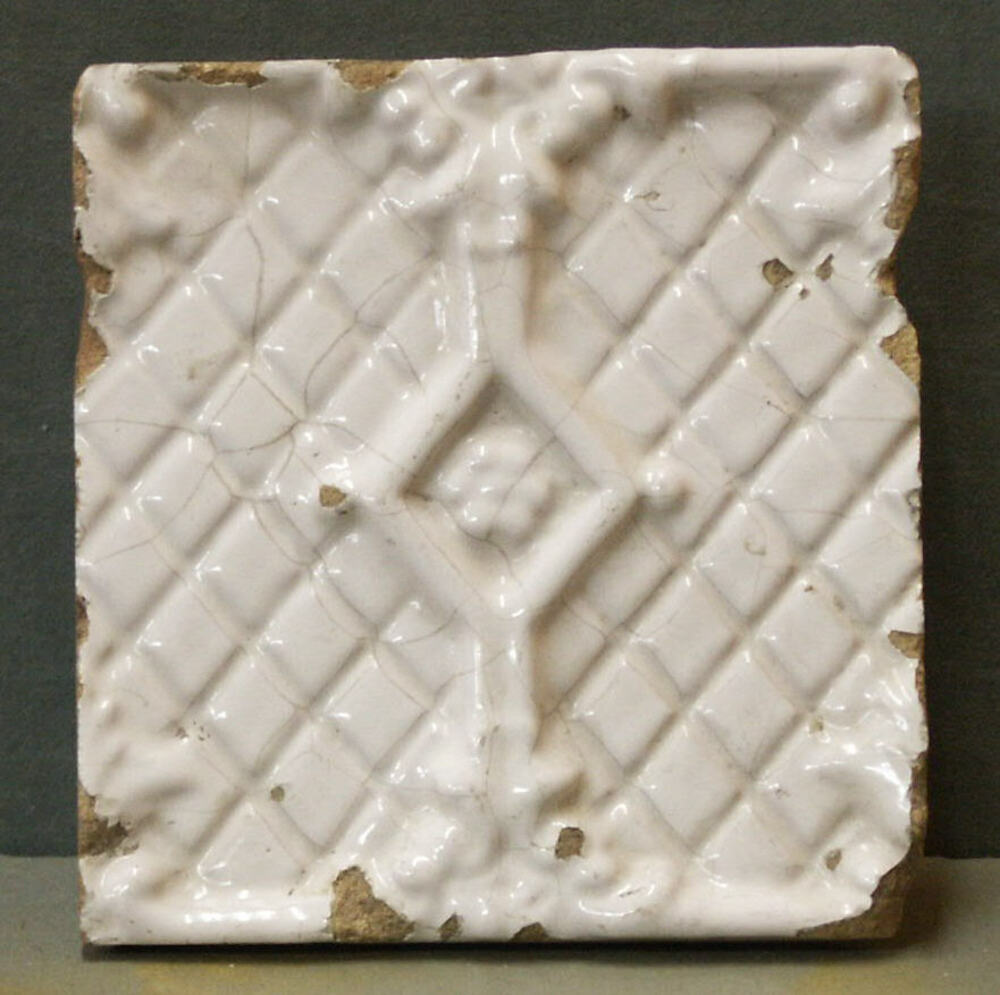 kacheltegel met versiering, wit geglazuurd, 18e eeuw