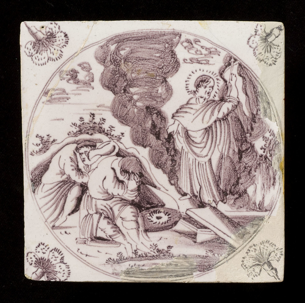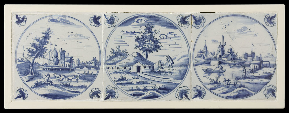 Tegelveld van keramiek, tinglazuur, voorstellende ee...