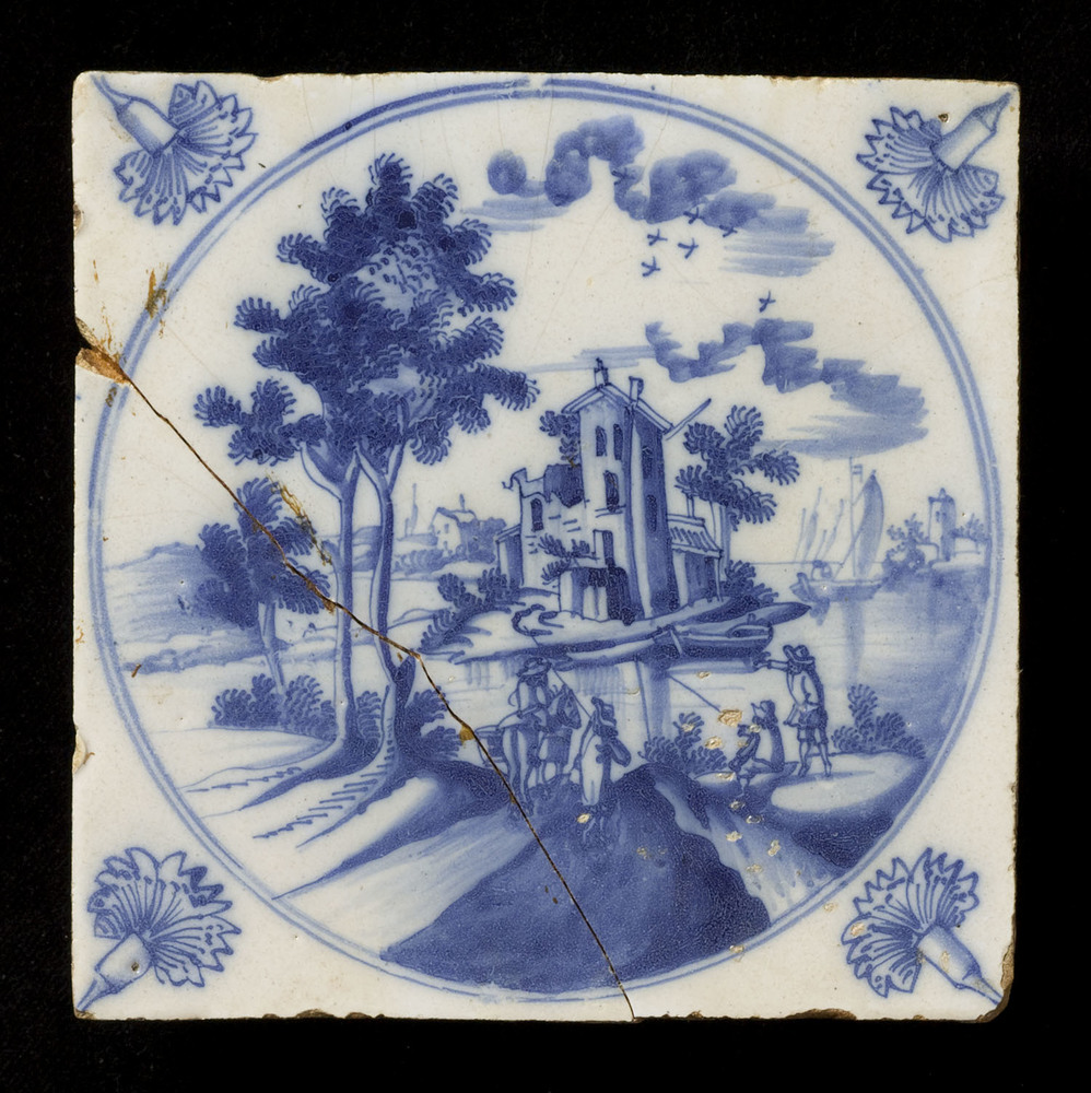 Tegel in tinglazuur, voorstellende verpozing aan de ...