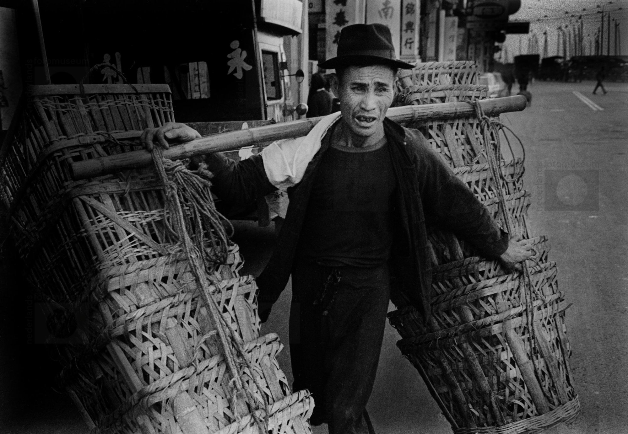 Man met manden, Kowloon, Hongkong, China (1959-1960)