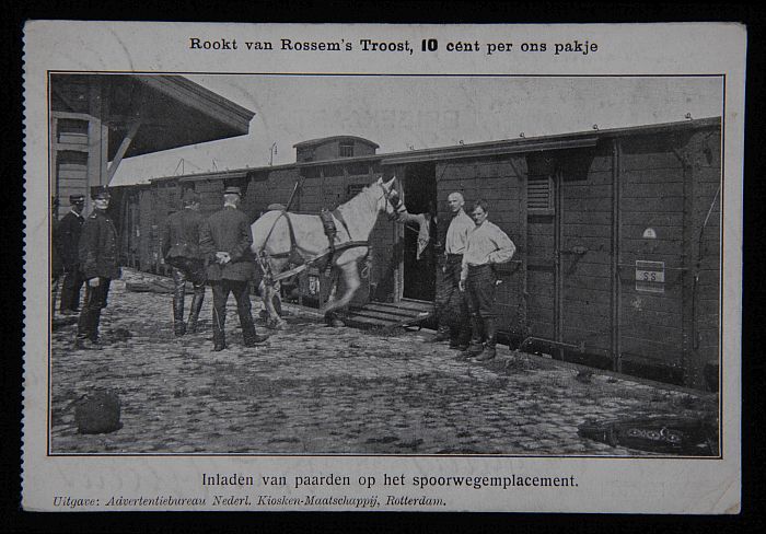 Twee briefkaarten met ruitergroep en "rookt Van Ross...