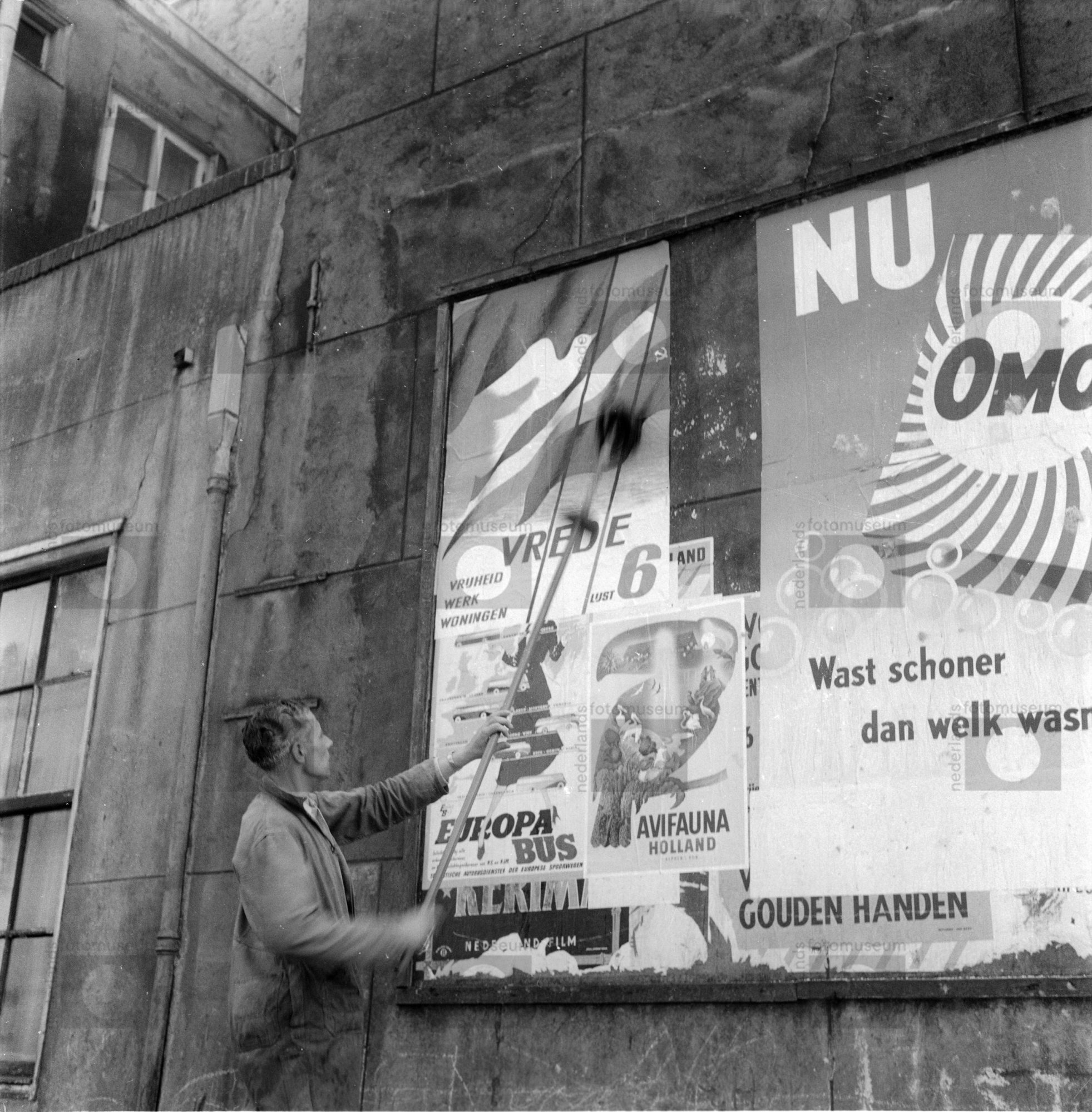 Aanplakken van CPN-verkiezingsaffiche, Amsterdam (1952)