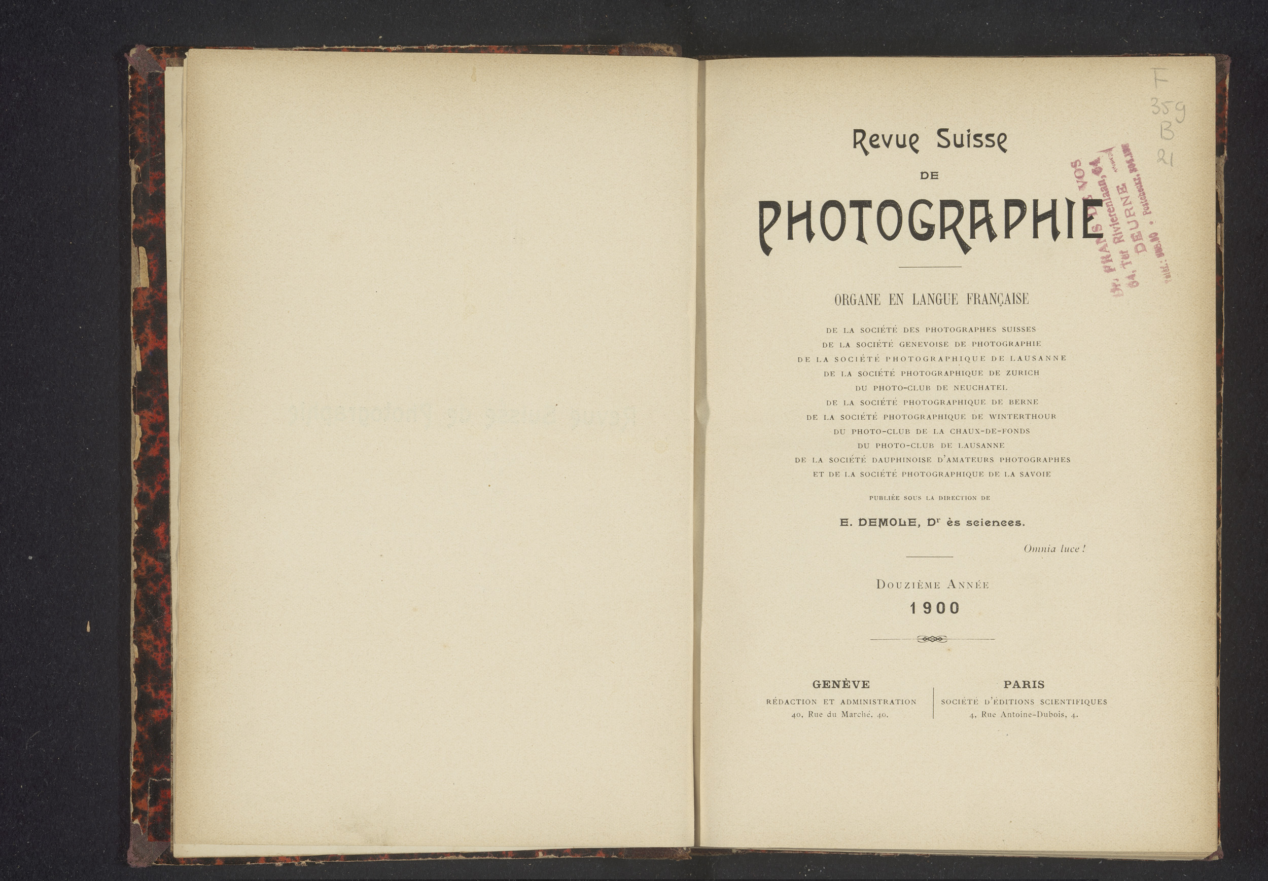 Revue suisse de photographie / Société genevoise de ...