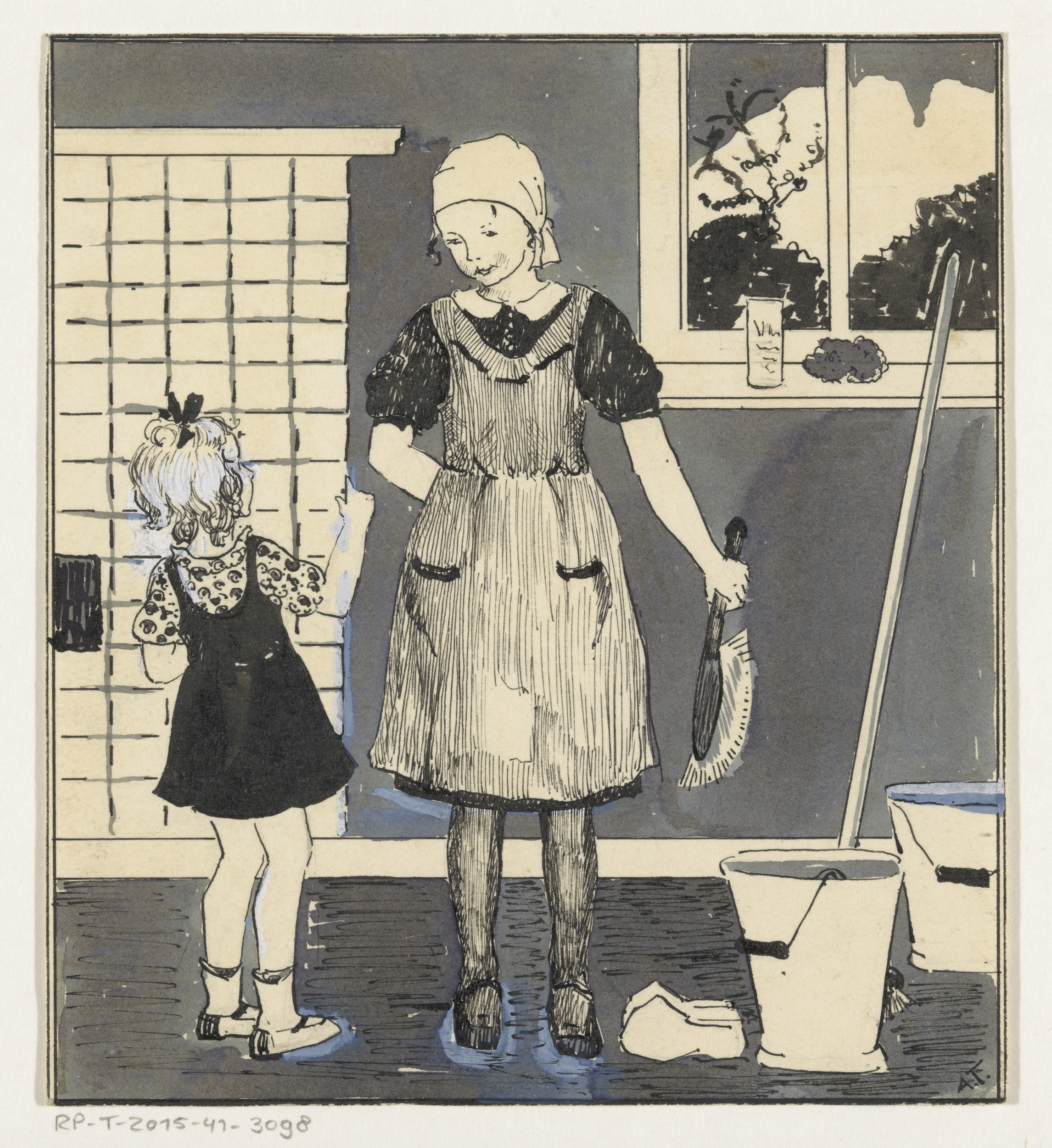 Meisje met schoonmaakgerei